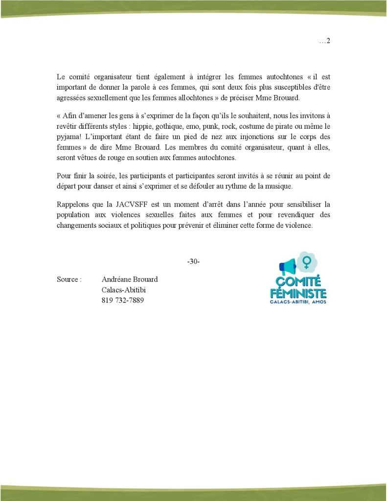 COMMUNIQUÉ – La poète abitibienne Jennifer V. Moore offrira une oeuvre inédite intitulée « Femmes-banderoles » ce vendredi 15 septembre 2023, dans le cadre de l’Ostie d’marche tenue au Parc de la Cathédrâle d’Amos à 17 h 30 qui aborde le thème de la crainte et de la reconnaissance